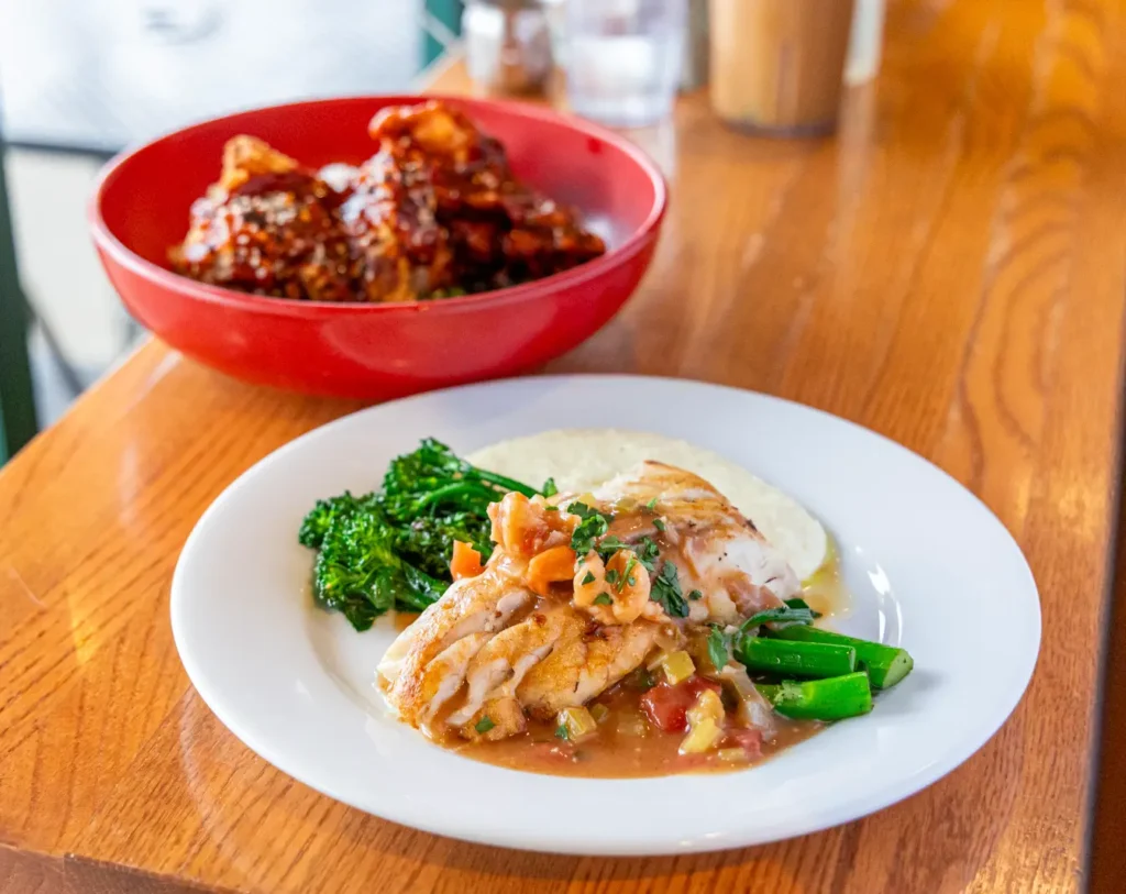 Creamy grits • braised broccolini • shrimp étouffée
